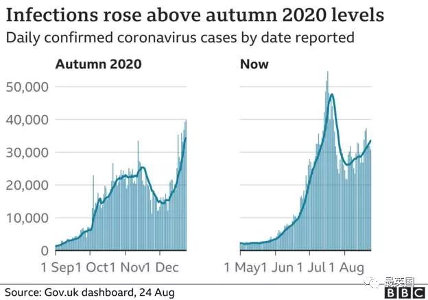 根据英国政策最新发布的数据,英国的新冠感染率高于去年秋季的疫情缓解期,但住院率却要低得多
