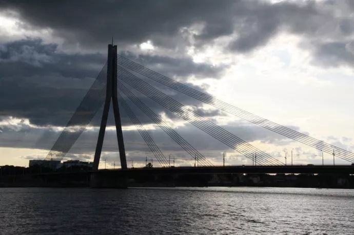 看过了美景,恋恋不舍的走下里加河大桥,回望斜拉桥梦幻般的剪影。