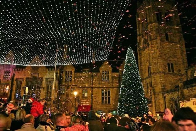 圣诞点灯在英国各地是一个圣诞前一个月左右会进行的特别仪式,城市里道路两旁、公园、步行街等都会装饰上绚丽多彩、各式各样的圣诞彩灯,当然还有圣诞树!