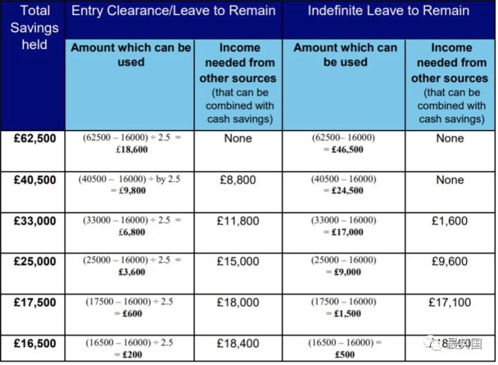 为伴侣提供担保的担保人、延期和永居申请人,必须证明他们每年工资不少于18,600英镑;如果仅依靠储蓄,必须有至少62,500英镑的存款,存款时间不得少于六个月;大家还可以通过不同的组合,比如存款和规律的收入,来证明自己达到了收入要求。