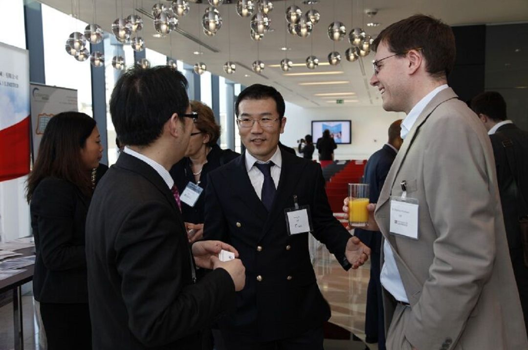 图:在唐顿国际移民线下交流会现场,Gradmatch合作企业与华人企业家在热切讨论中