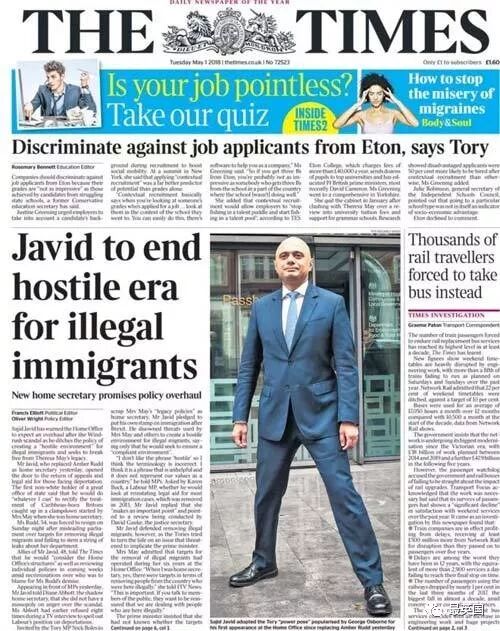 Sajid Javid在就任时也表示,将确保英国移民政策的公平,体现对人的尊重。