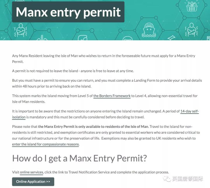 首先,登陆马恩岛政府官网,找到“入岛申请”一页:https://covid19.gov.im/general-information/manx-entry-permit/